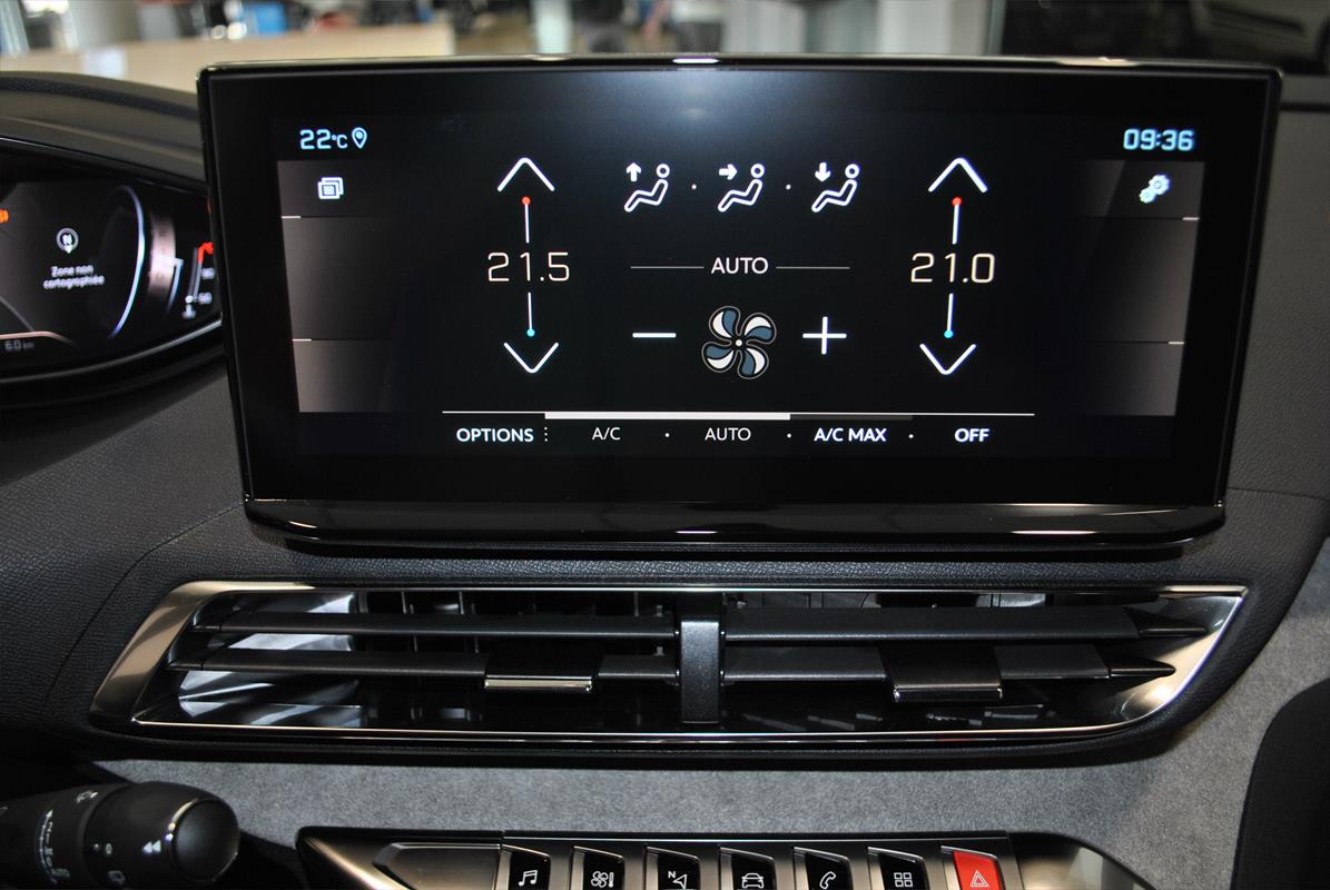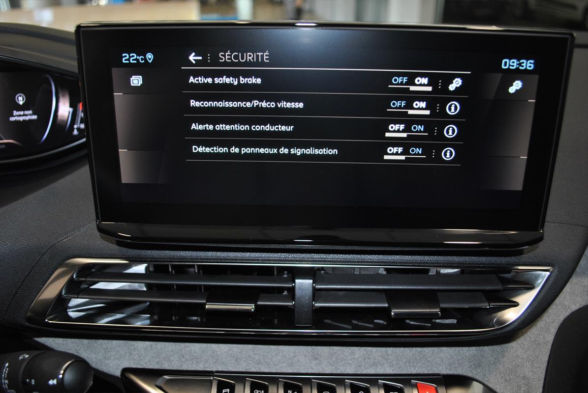 Toit noir, vitres surteintées, volant sport, volant multifonctions, palettes au volant, volant cuir, rétroviseurs rabattables, rétroviseur interieur electrochrome, phares à LED, LED phare de jour, Détecteur d’angle mort, détecteur de pluie, détection des panneaux routiers, détecteur de lumière, jantes aluminium, GPS tactile, caméra de recul, clé mains-libres, hayon arrière électrique, Assistant maintien de voie, Active safety brake, régulateur de distance, limiteur de vitesse, I Cockpit, Feux de route assistés, 7 PLACES, Cuir/tissu, voeu